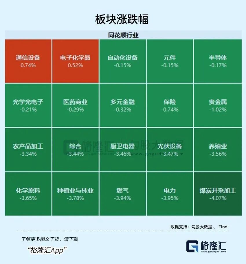 着落方面,电力板块走弱,煤炭板块下挫。