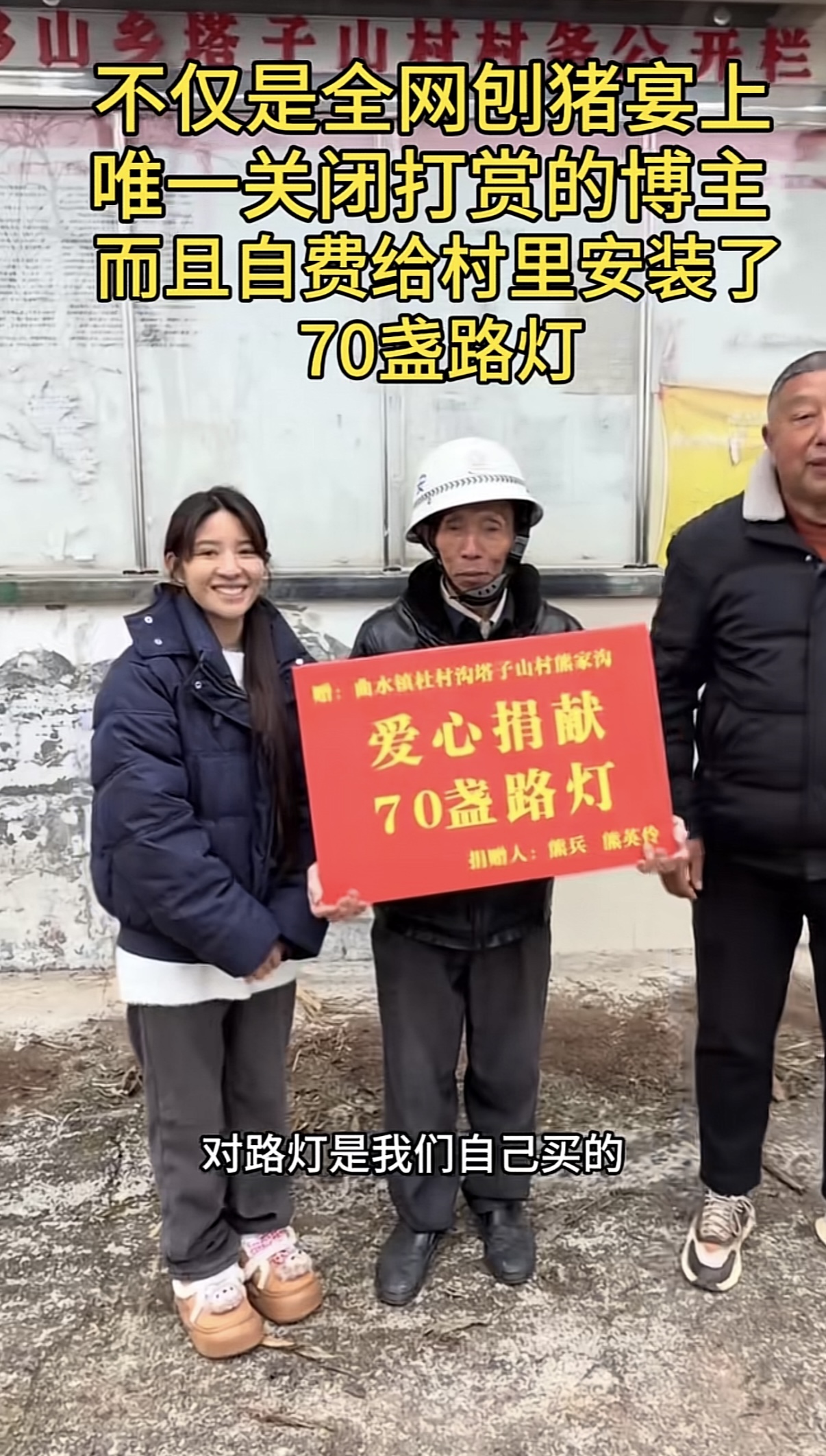 阿梓真名熊英伶,全网粉丝超400万。一周前,她在网上发视频“摇东说念主”:我方出钱给村里装灯,缺安设帮手,完工请宇宙吃刨汤宴。没念念到,有近万东说念主应声而来襄理。